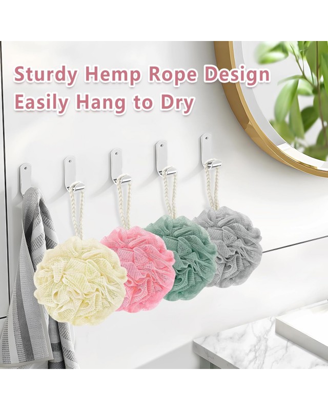Shower Loofah Bath Sponge, 60G Loofah Exfoliating Body Scrubber, 4 Color Mesh Shower Pouf Balls for Body Wash